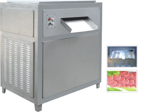 冰片机可为肉制品加工过程中加入冰片能起到降温保质作用,例如:斩拌,搅拌,滚揉等产品。 制冷系统采用优质名牌的风冷或水冷压缩机组,制冷效果好,可制成厚度约1.0-2.0mm冰片,制冷快,产量高。