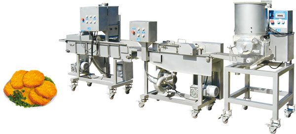 全自动汉堡肉饼、鸡柳、鱼排生产线可以自动完成成型、上浆、上粉、上面包屑等工序,生产线自动化程度高操作简便。 可采用原料:肉类牛、羊、猪肉等。水产(鱼虾)蔬菜马铃薯南瓜等。 生产线可生产出市场流行的汉堡肉饼、麦乐鸡块、汉堡肉饼、鸡柳、南瓜饼、肉串等产品,是快餐店、配送中心、食品加工厂理想生产线。