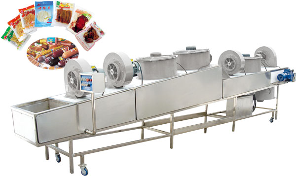 SSFJ-600型隧道式杀菌风干机广泛用于食品行业,包装食品的二次灭菌后表面水份烘干,具有快速风干功能,风力大小、行程可调整,并有紫外线杀菌功能,风干过程中对表面水份可自动排出,风干物可从首端投入行走到末端即可达到理想效果。